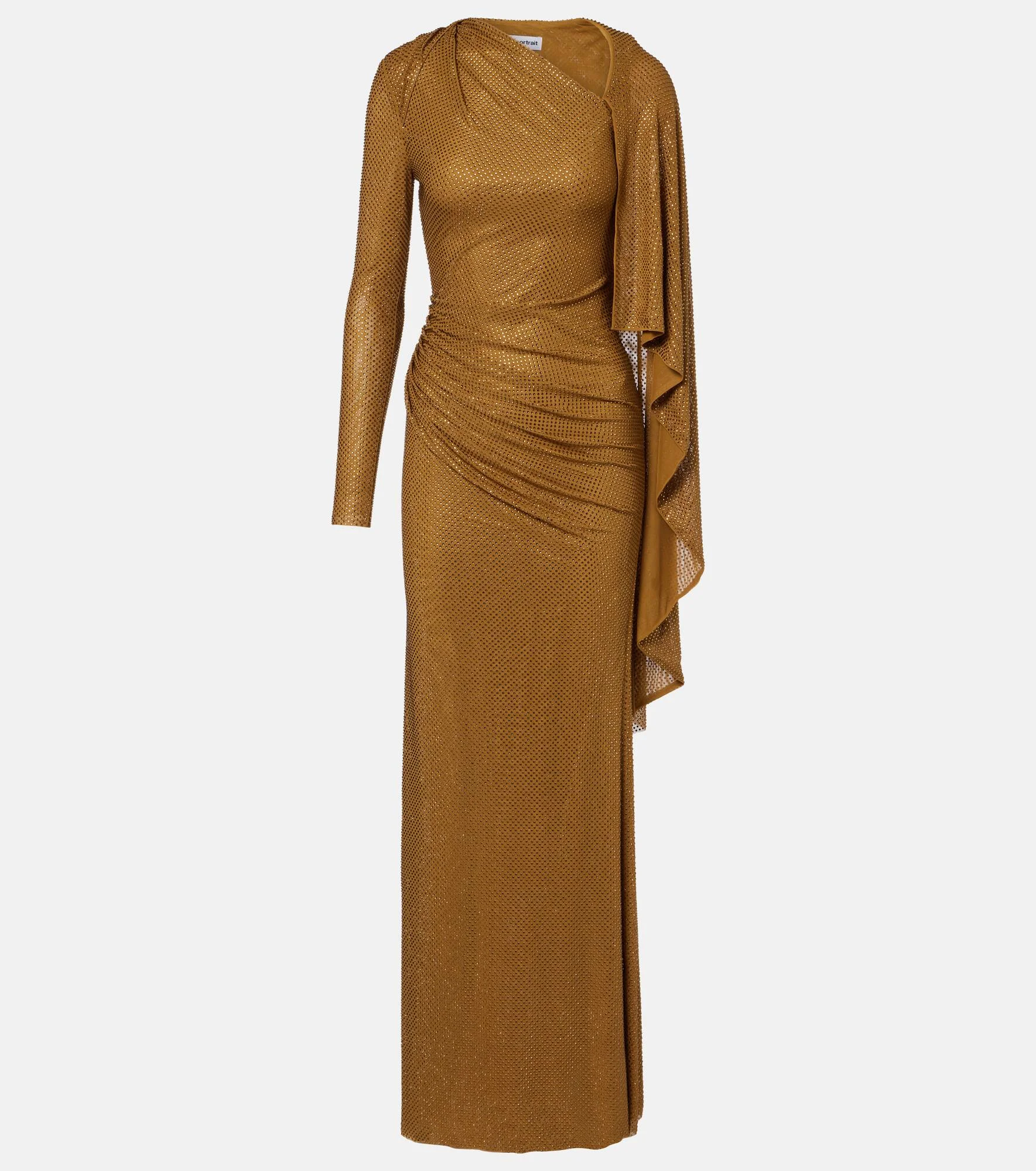 With a mission to celebrate women in every design, Self-Portrait has built a strong cult following for its soft graceful aesthetic. Made from soft mesh, this gown features a cape detail, soft draping, and a shimmering layer of tonal crystals. Product Details - Material: 95% polyester, 5% elastane - Care instructions: dry clean - Made in China - Color: gold - Designer color name: Gold - Item color: gold - Closure: concealed zipped side - Item number: P01127427 Size & Fit - True to size - Close fit sleeves - Fitted - Loose outer layer - Slightly stretchy fabric - The model seen in the picture is 178cm-5'10" and wearing a size UK 8