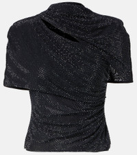 Draped embellished mesh top