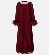 Embellished feather-trimmed chiffon maxi dress
