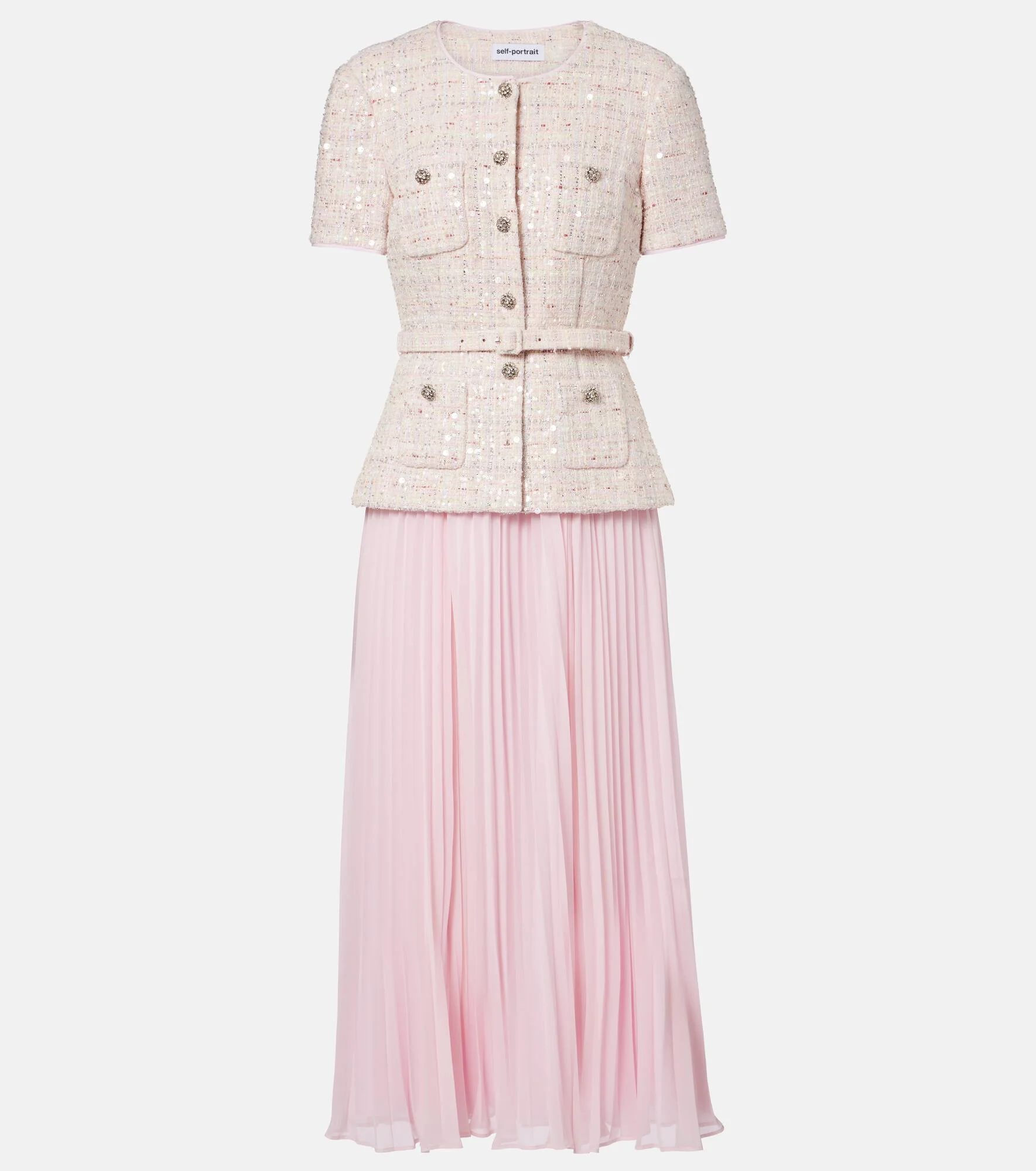 With a mission to celebrate women in every design, Self-Portrait has built a strong cult following for its soft, graceful aesthetic. This midi dress is rendered in a vibrant pink hue and is adorned with shimmering embellishments. Product Details - Material: 55% cotton, 33% polyester, 7% other fibers, 4% metallic fibres, 1% polyamide - Care instructions: dry clean - Made in China - Color: pink - Designer color name: Pink - Closure: buttoned front - Pockets: buttoned pockets - Item number: P01146502 Size & Fit - True to size - Cinched waist - Elasticated waist - Adjustable at the waist - Non-stretchy fabric - The model seen in the picture is 178cm-5'10" and wearing a size UK 8