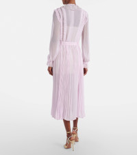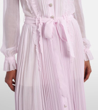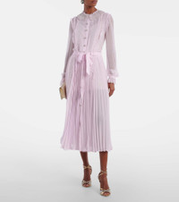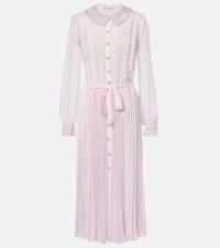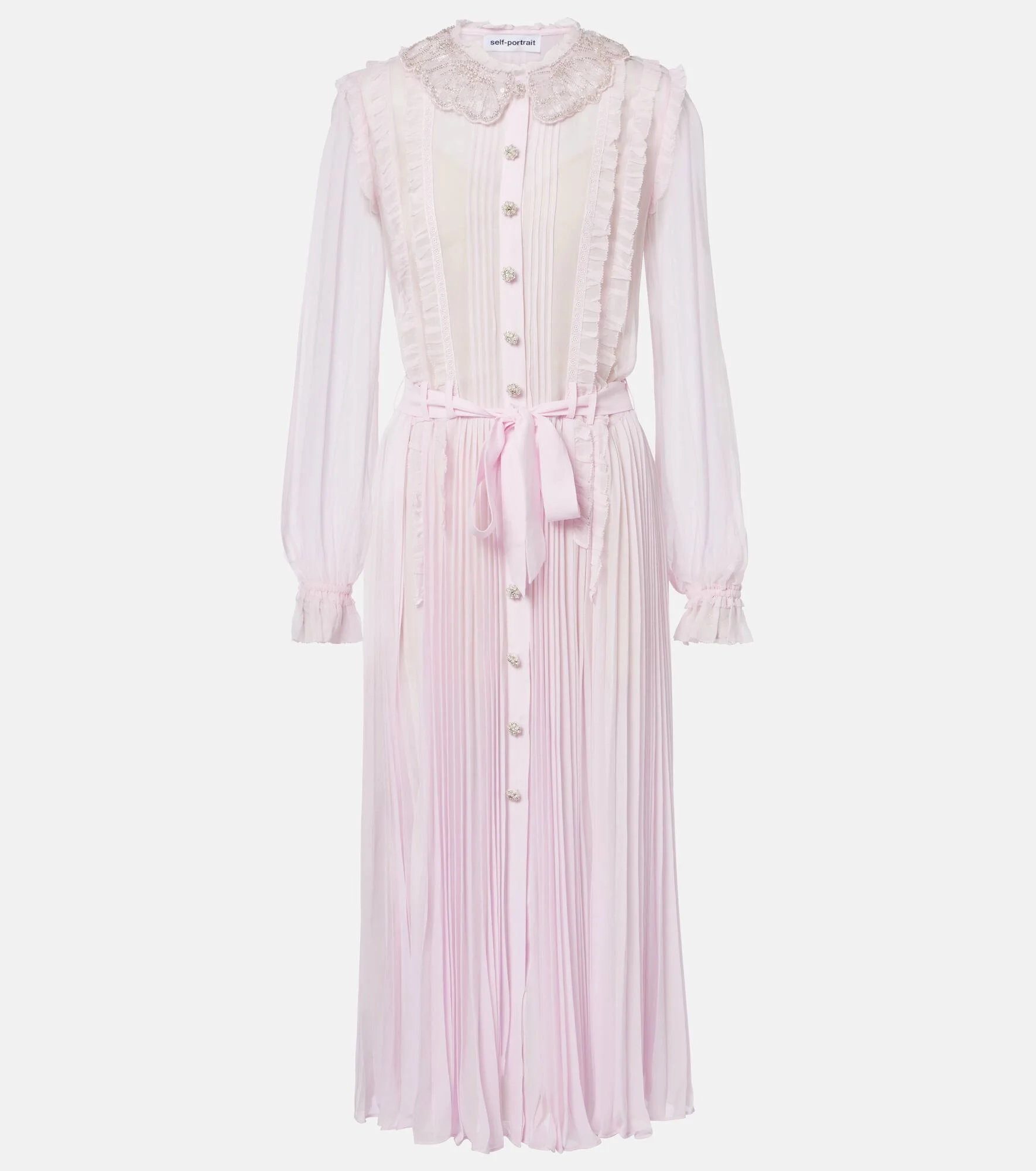 With a mission to celebrate women in every design, Self-Portrait has built a strong cult following for its soft graceful aesthetic. Made from pleated georgette, this delicate shirt dress is finished with embellished buttons and a sequined collar. Product Details - Material: 100% polyester - Care instructions: dry clean - Made in China - Color: pink - Designer color name: Pink - Item color: pink - Material II: 100% viscose - Lace: 100% polyester - Trim: 100% polyester - Cuff: frilled, elasticated - Sleeves: long-sleeved - Detachable belt - Lining: 100% polyester - Detachable lining - Closure: buttoned front - Item number: P01127363 Size & Fit - True to size - Loose fit, comes with belt - Non-stretchy fabric - The model seen in the picture is 178cm-5'10" and wearing a size UK 8