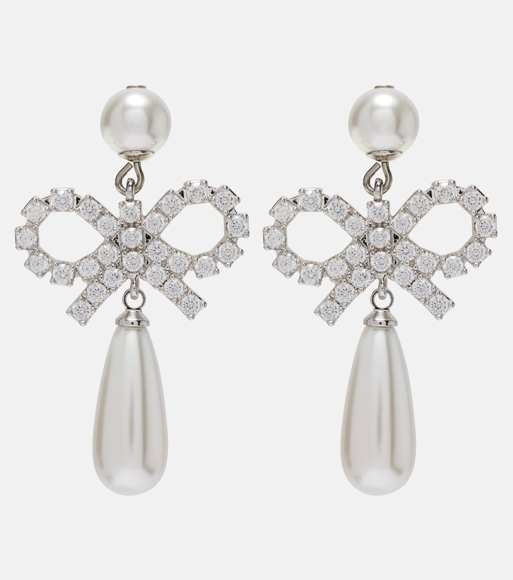 With a mission to celebrate women in every design, Self-Portrait has grown a strong cult following behind its soft feminine aesthetic. These delicate bow-shaped earrings come with white faux pearl drops and sparkling crystals. Product Details - Material: brass, stainless steel, cubic zirconia, faux pearls - Made in China - Item color: silver - Includes: dust bag, box - Item number: P01031013 Size & Fit - Length 4.5cm-2" - Max. width 2.5cm-1"