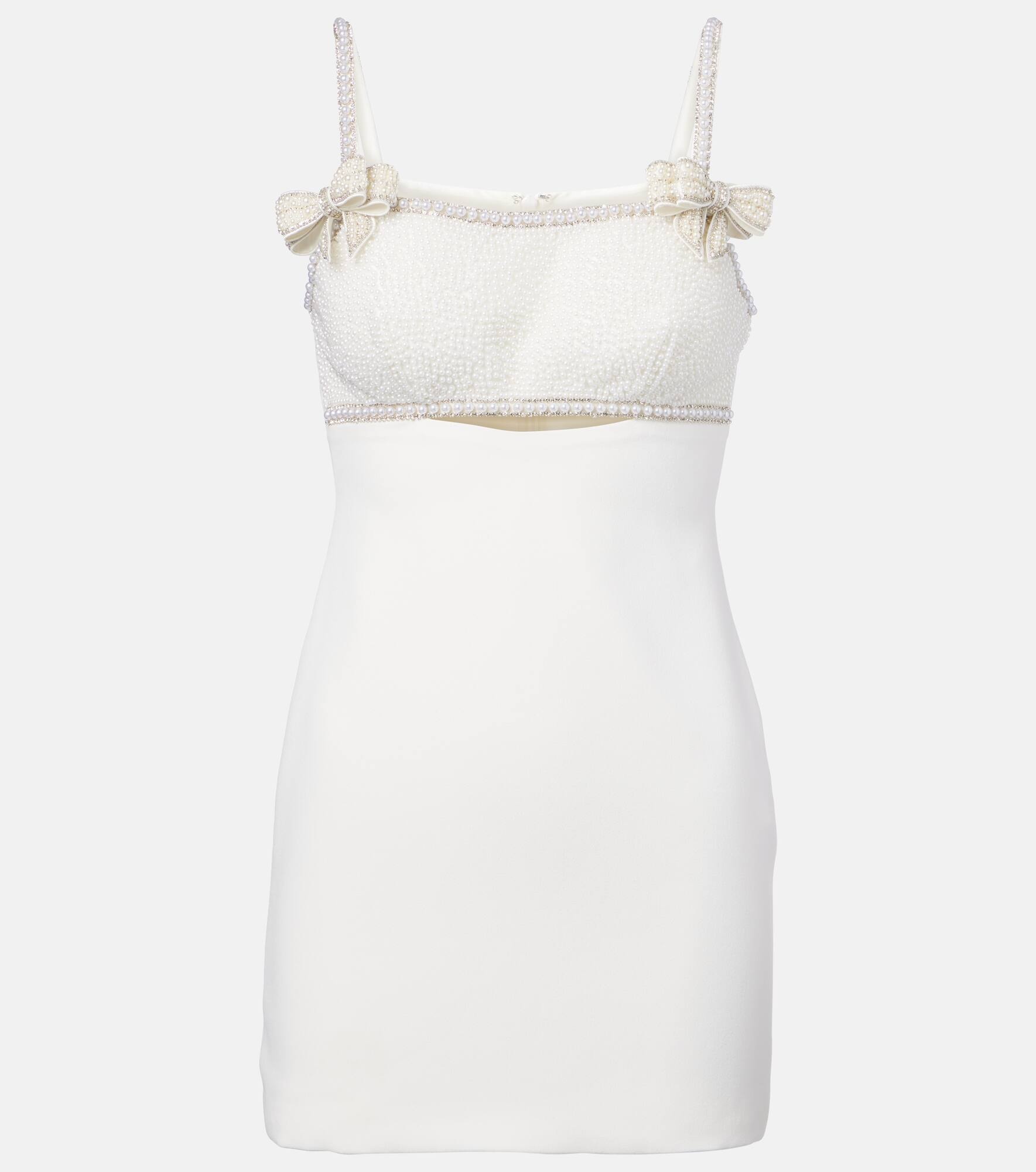 Faux pearl-embellished crêpe minidress