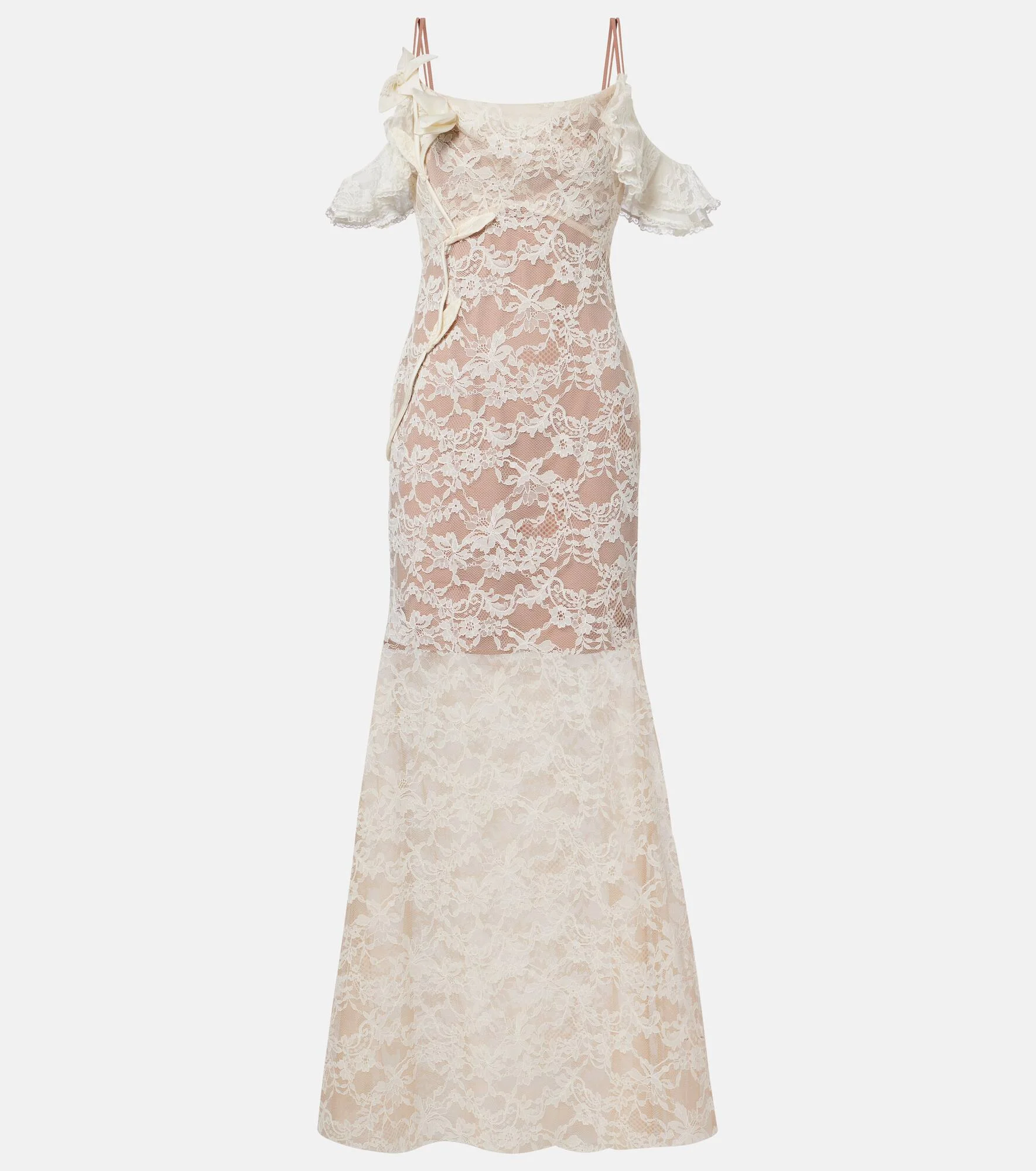 Floral-appliqué lace gown