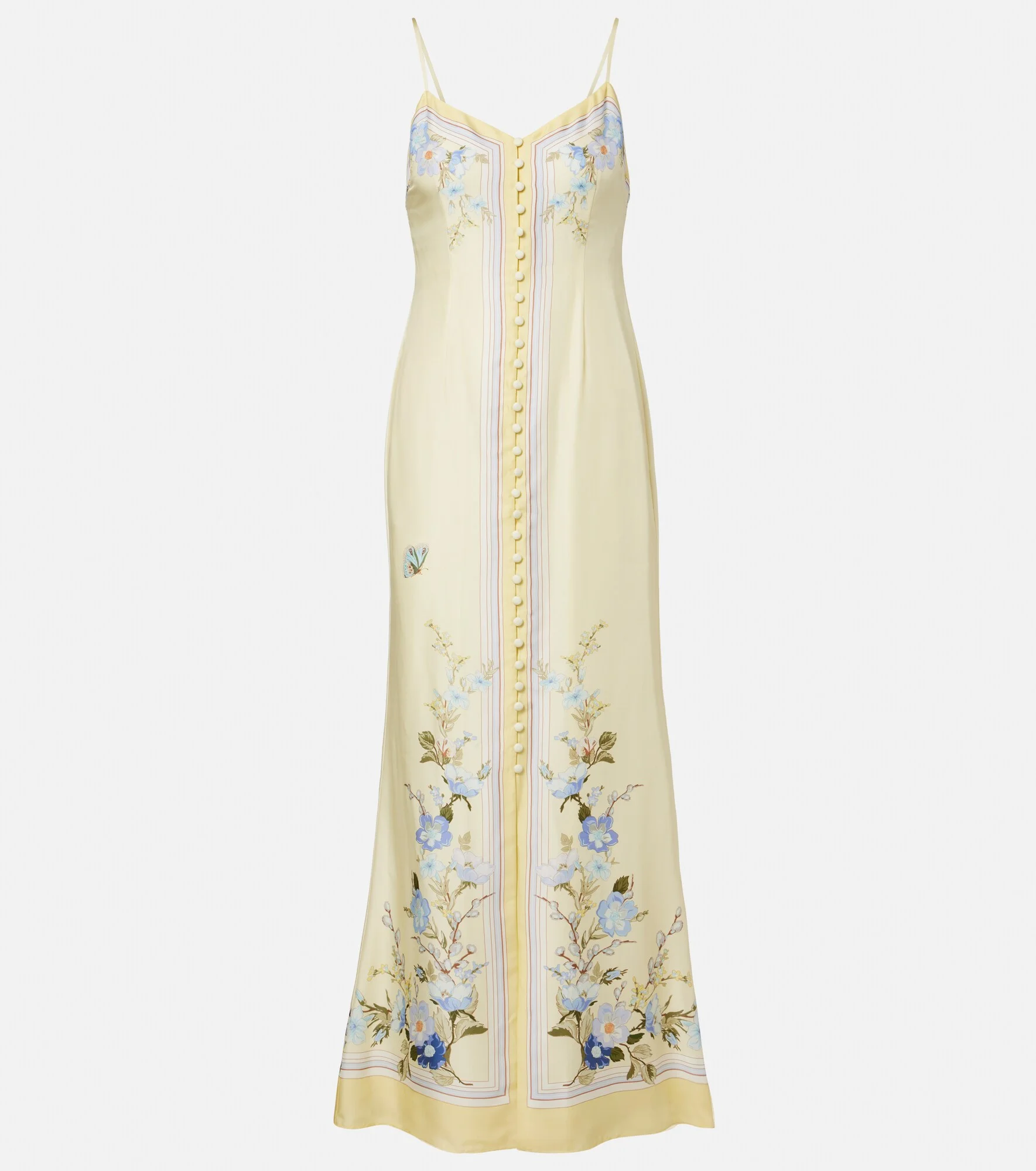 Yellow Floral Silk Midi Dress