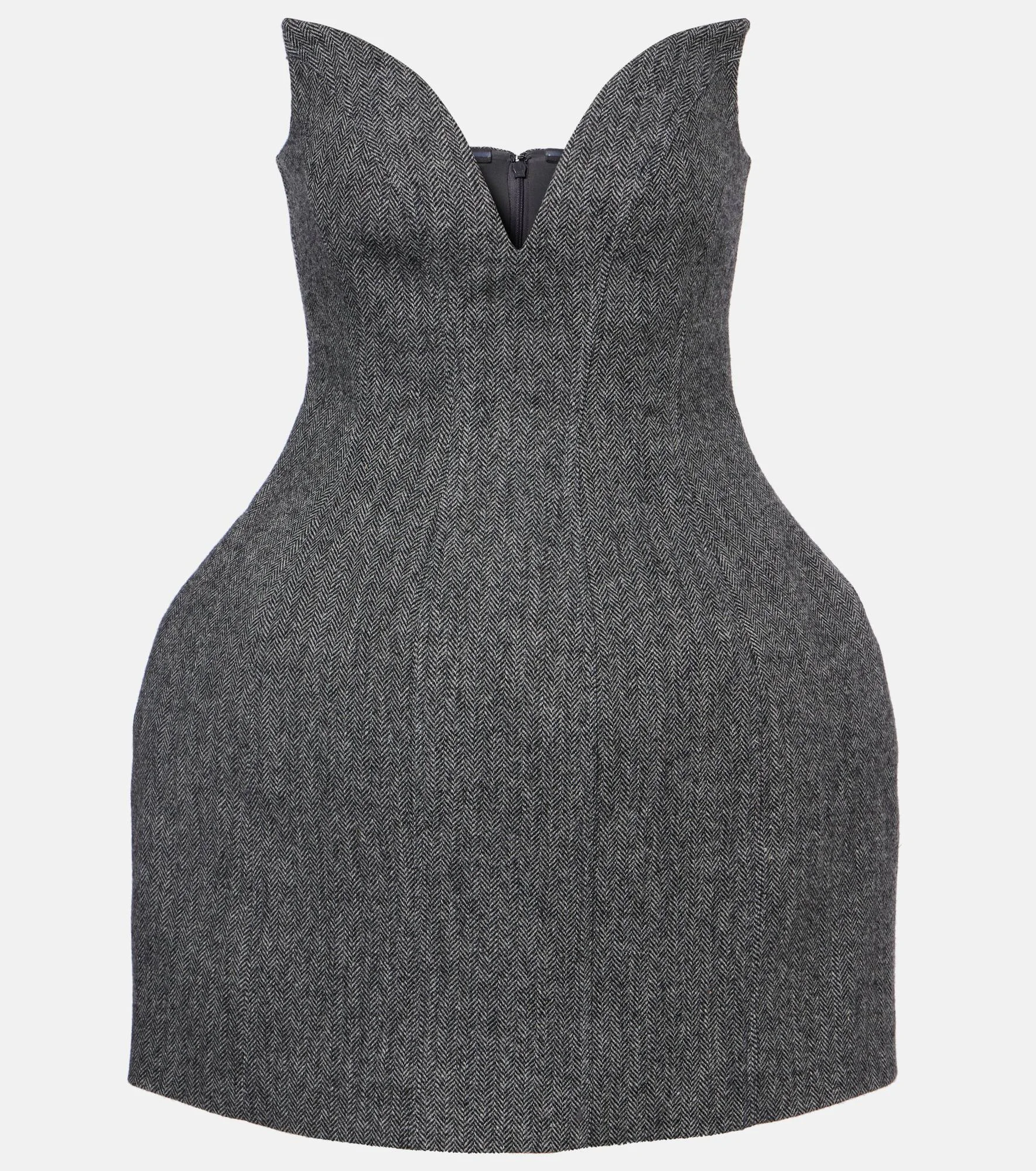 With a mission to celebrate women in every design, Self-Portrait has grown a strong cult following behind its soft feminine aesthetic. Made from wool-blend material, this bustier dress sits at a mini length and features a herringbone pattern, an exaggerated flared skirt, and a sweetheart neckline. Product Details - Material: 62% wool, 38% polyester - Care instructions: dry clean - Made in China - Color: grey - Designer color name: Grey - Item color: gray - Lining: 100% polyester - Boning - Closure: concealed zipped back - Item number: P01127481 Size & Fit - Fits large to size - we recommend trying one size smaller - Strapless - Cinched waist - Non-stretchy fabric - The model seen in the picture is 178cm-5'10" and wearing a size UK 6