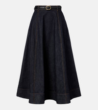 High-rise denim midi skirt