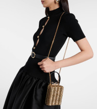 With a mission to celebrate women in every design, Self-Portrait has built a strong cult following for its soft and graceful aesthetic. This box bag comes in a Micro size and has geometric crystal embellishments on the front. Product Details - Material: polyester - Lining: fabric - Made in China - Designer color name: Gold - Item color: black, gold - Trim: leather - Top handle, Detachable chain shoulder strap - Closure: push-clasp fastening - Item number: P01127723 Size & Fit - Height 13,5cm-5.5" - Width 11cm-4.5" - Depth 5,5cm-2" - Chain length 112cm-44" - Length of handle 28cm-11"