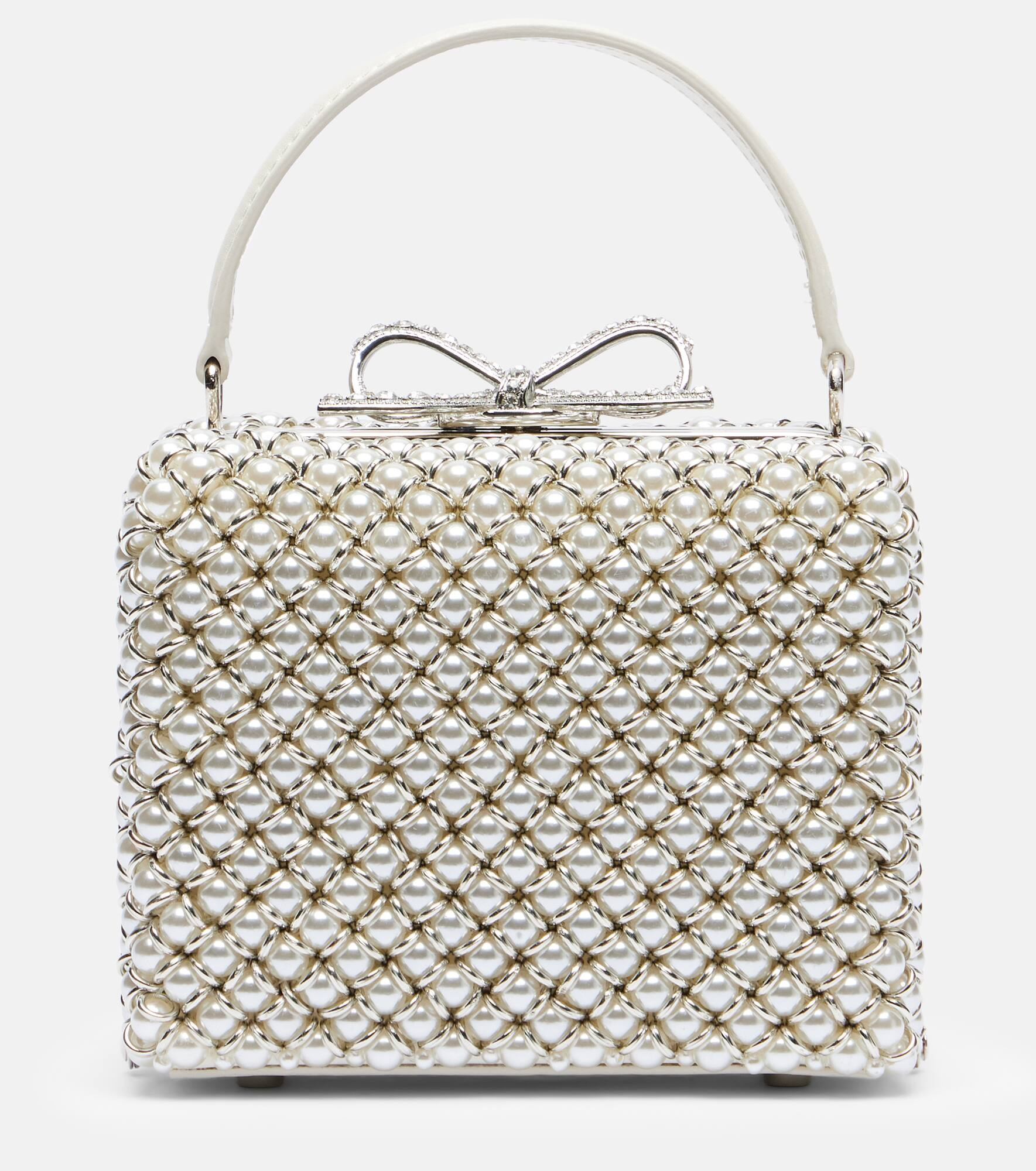 Product Details - Material: polyester - Lining: faux leather - Made in China - Designer color name: Cream - Item color: white - Item number: P01071107 Size & Fit - Height 11cm-4.5" - Width 13,5cm-5.5" - Depth 7cm-3" - Chain length 110cm-43.5" - Length of handles 32cm-12.5"