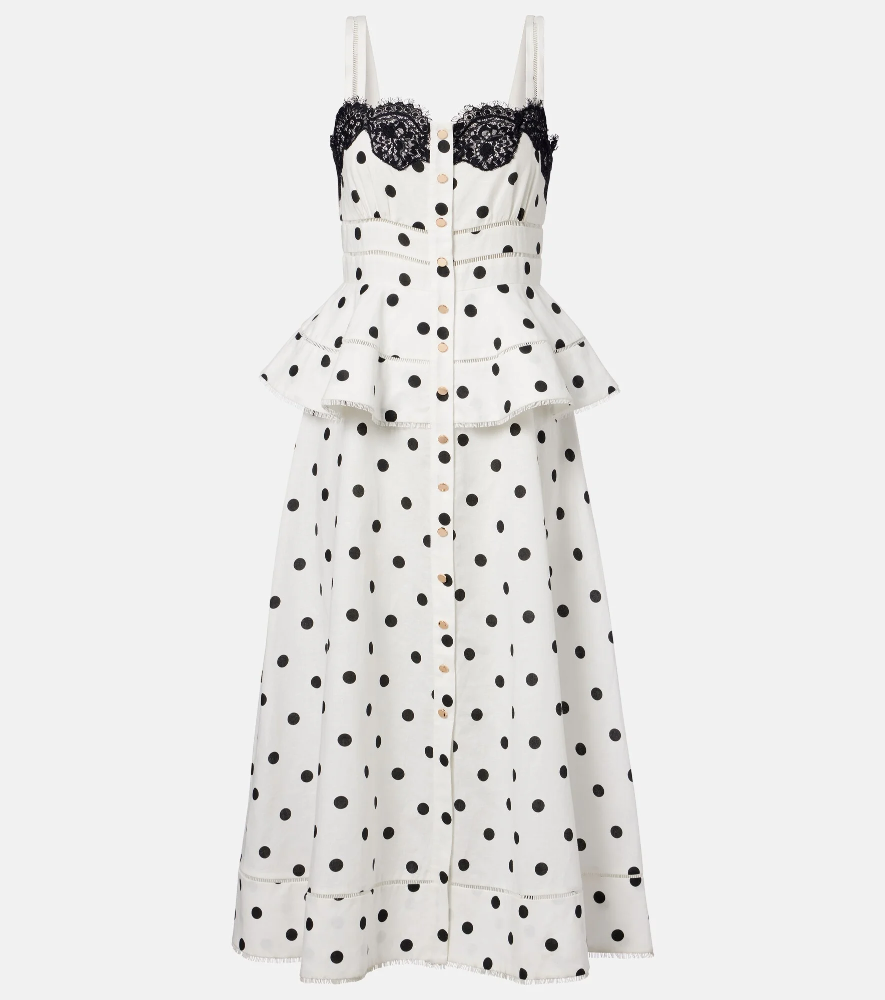 Polka-dot linen and cotton midi dress