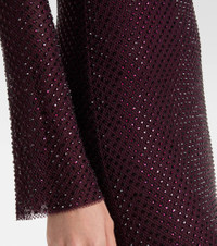 Made for grand entrances, this maxi dress by Self-Portrait is crafted from fishnet mesh and embellished with rhinestones for a glitzy look. The glamorous style features long sleeves, a mockneck, shoulder pads, and a concealed zip closure. Product Details - Material: 96% polyester, 4% elastane - Care instructions: dry clean - Made in China - Designer color name: Burgundy - Item color: burgundy - Lining: 93% polyester, 7% elastane - Closure: concealed zipped back - Shoulder pads - Item number: P01081431 Size & Fit - True to size - Shoulder pad inserts - Fitted - Non-stretchy fabric - The model seen in the picture is 178cm-5'10" and wearing a size UK 8