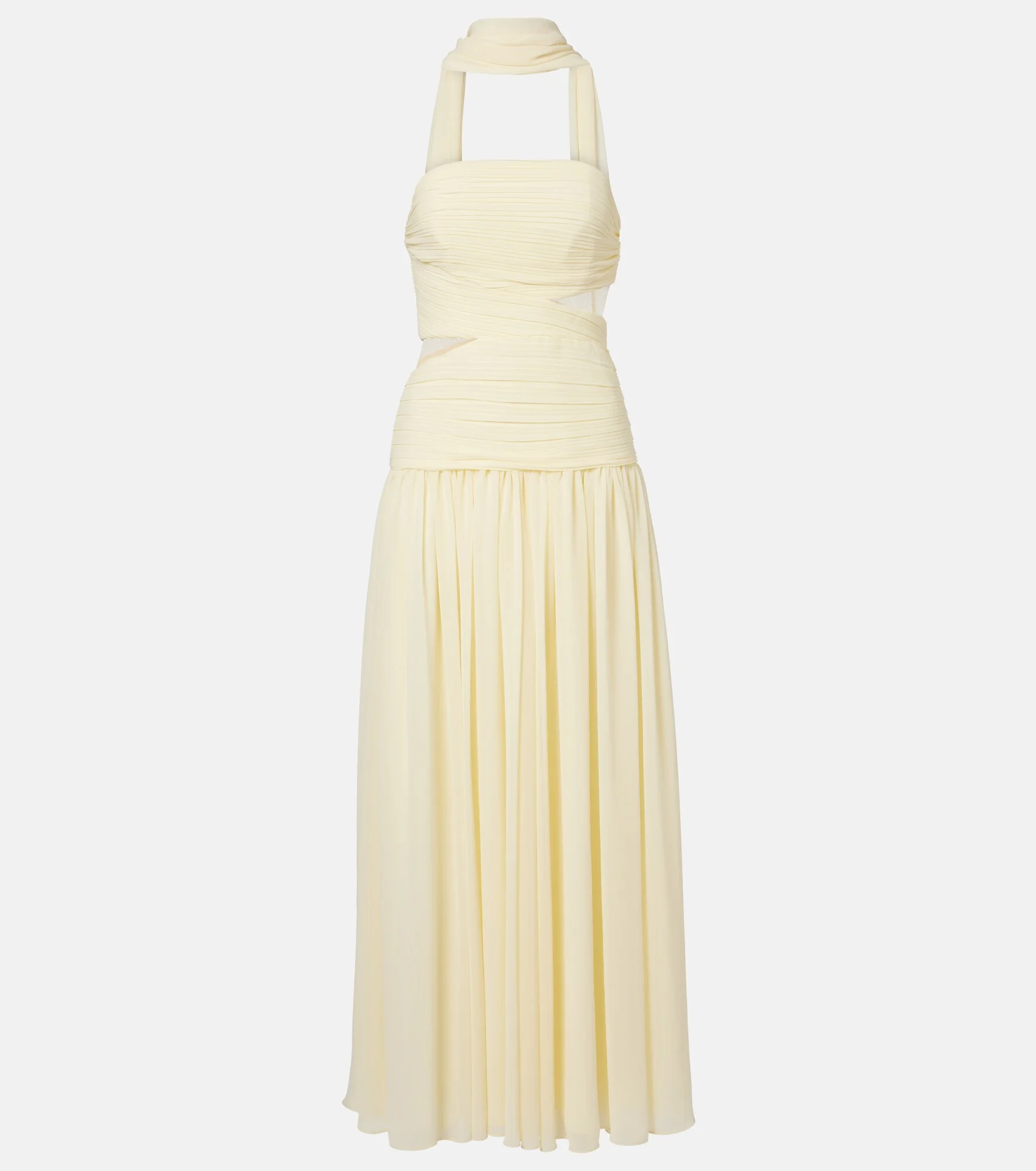 With a mission to celebrate women in every design, Self-Portrait has built a strong cult following for its soft graceful aesthetic. Made from georgette, this maxi dress features a scarf detail, bandage-like bodice, and gathered A-line skirt. Product Details - Material: 100% polyester - Care instructions: dry clean - Made in China - Color: yellow - Designer color name: Yellow - Trim: 95% polyamide, 5% elastane - Lining: 100% polyester - Lining II: 90% polyester, 10% elastane - Closure: concealed zipped back - Item number: P01148374 Size & Fit - True to size - Strapless - Internal boned corset for support - Cinched waist - Non-stretchy fabric - The model seen in the picture is 178cm-5'10" and wearing a size UK 6