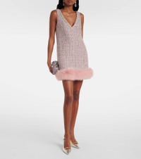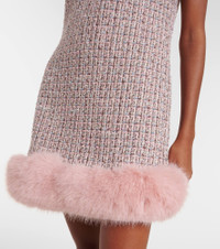 Pink Boucle Fur Hem Mini Dress