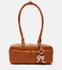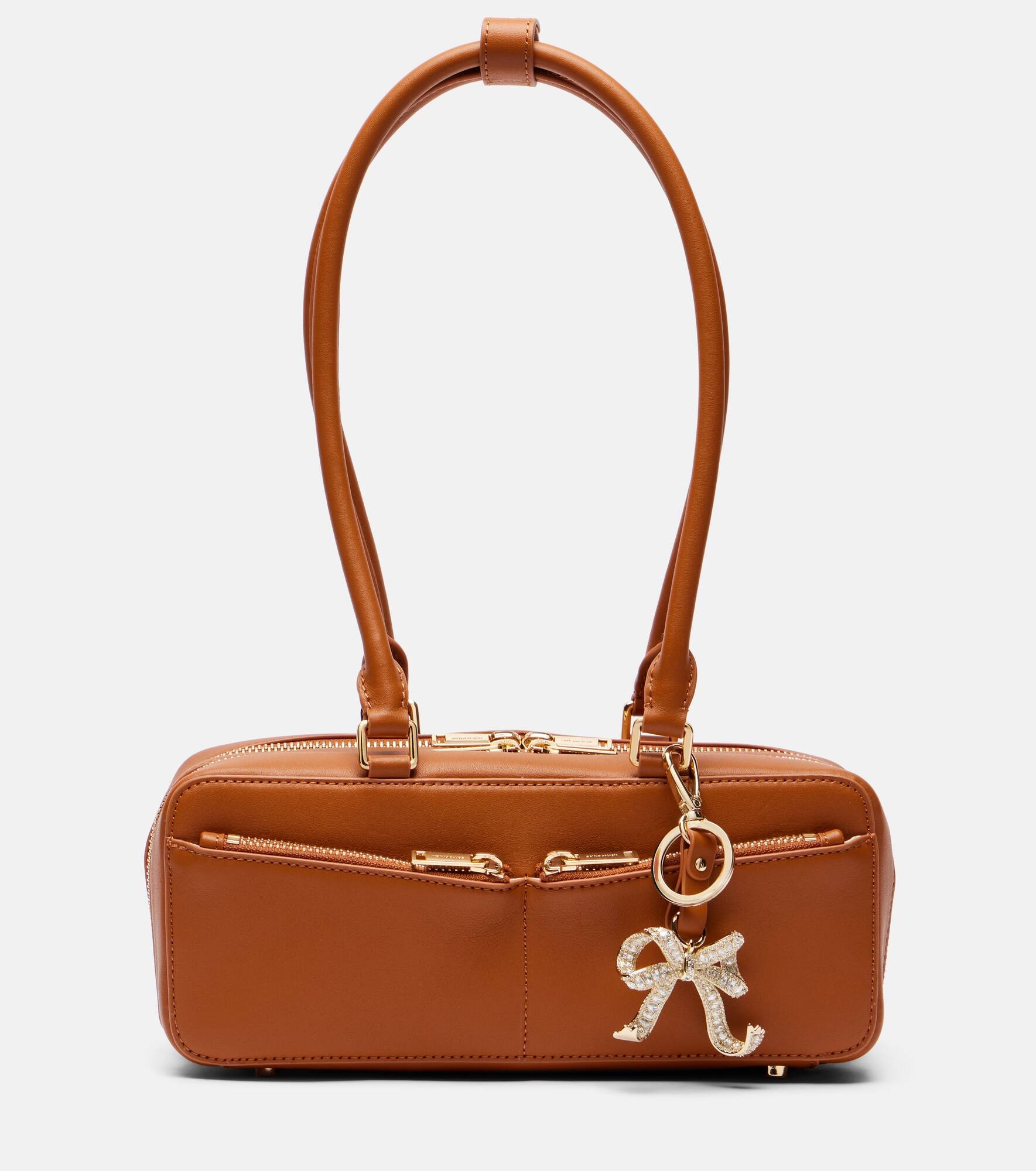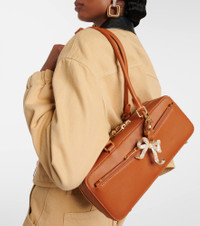 Product Details - Material: leather - Lining: faux leather - Made in China - Designer color name: Tan - Item color: brown - Closure: zipped top - Top handles - Hardware color: silver - Item number: P01031009 Size & Fit - Height 12cm-4.5" - Width 28cm-11" - Depth 8cm-3" - Pendant length 13,5cm-5.5" - Pendant width 6cm-2.5" - Length of handles 67cm-26.5"