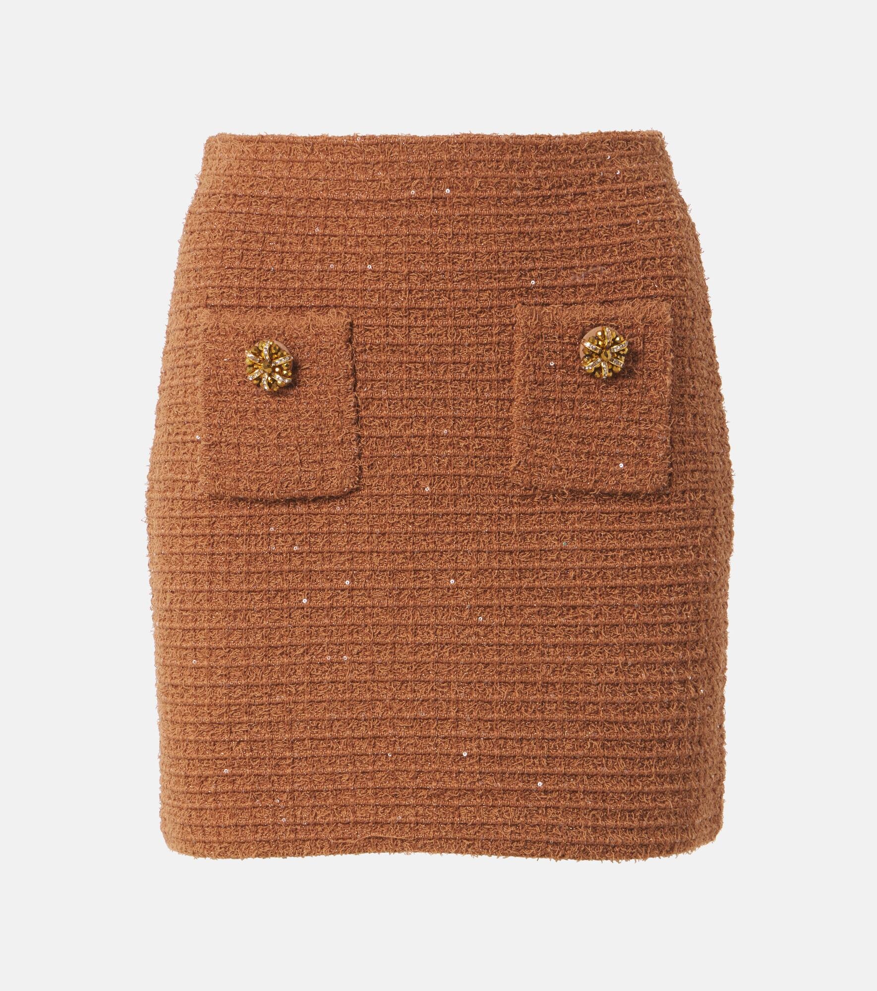 Brown Textured Knit Mini Skirt