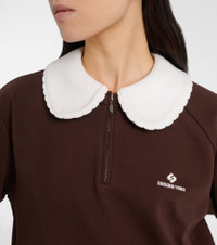 This sweatshirt from Shushu/Tong is made from a cotton-blend fabric with a half-zipped front. The design is finished with a smart, scalloped collar and logo embroidery on the chest. Product Details - Material: 92.8% cotton, 7.2% polyester - Care instructions: hand wash cold - Made in Japan - Designer color name: Brown - Item color: brown - Material II: 92.5% cotton, 7.5% polyester - Material III: 62.8% cotton, 37.2% polyester - Hardware color: silver - Detachable collar - Cuff: ribbed - Closure: partially zipped front - Hem: ribbed - Item number: P01093413 Size & Fit - True to size - Designed for a loose fit - Slightly stretchy fabric - Falls below the hip - The model seen in the picture is 178cm-5'10" and wearing a size UK 8