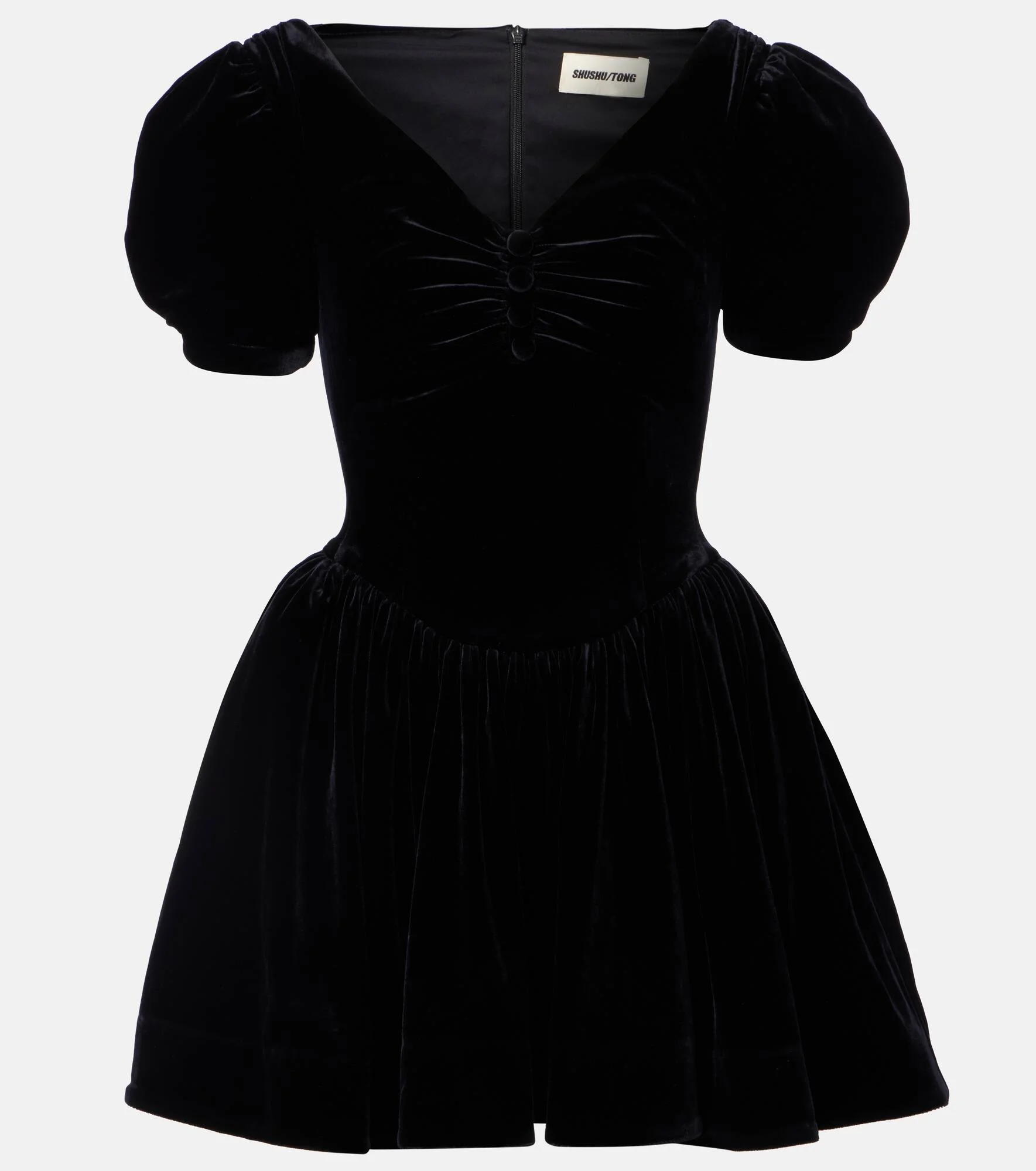 Shushu/Tong fuses classic and contemporary codes to create unique designs, like this minidress. The style is made from a smooth velvet fabric with charming puff sleeves and gathering at the neckline. Product Details - Material: 76.5% triacetate, 23.5% polyester - Care instructions: dry clean - Made in Japan - Designer color name: Black - Item color: black - Lining: 100% polyester - Details: 100% silk - Closure: concealed zipped back - Item number: P01093431 Size & Fit - True to size - Fitted bodice, loose skirt - Slightly stretchy fabric - The model seen in the picture is 178cm-5'10" and wearing a size UK 8