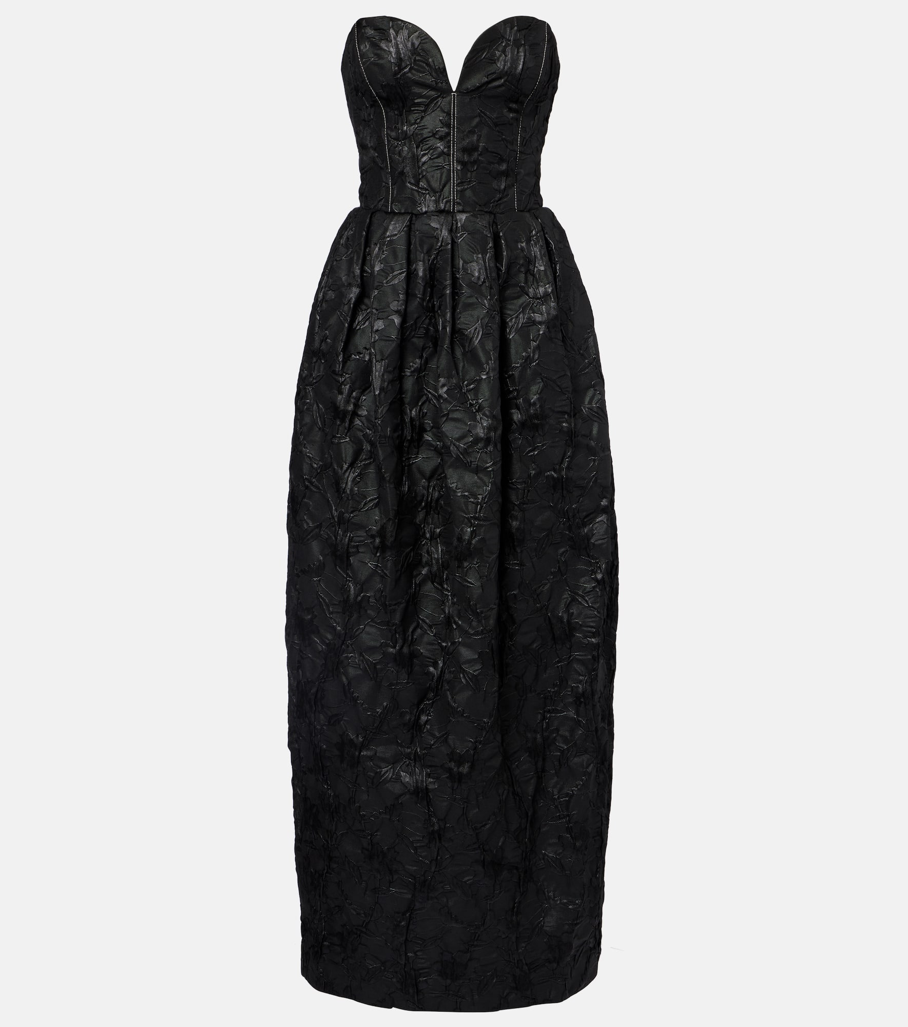 Taking inspiration from sculpture and architecture, Simkhai's impactful designs combine innovative construction with hand-detailing. The Adeena gown will turn heads at your next event with its structured silhouette cut from floral jacquard. Product Details - Material: 57% polyester, 27% cotton, 9% acrylic, 4% polyamide, 2% other fibres, 1% elastane - Care instructions: dry clean - Made in China - Designer color name: Black - Item color: black - Lining: 100% polyester - Closure: concealed zipped back - Short vent - Pockets: side slit pockets - Boning - Item number: P01097662 Size & Fit - True to size - Strapless - Internal boned corset for support - Cinched waist - Non-stretchy fabric - slit length 53cm-21" - The model seen in the picture is 178cm-5'10" and wearing a size US 4