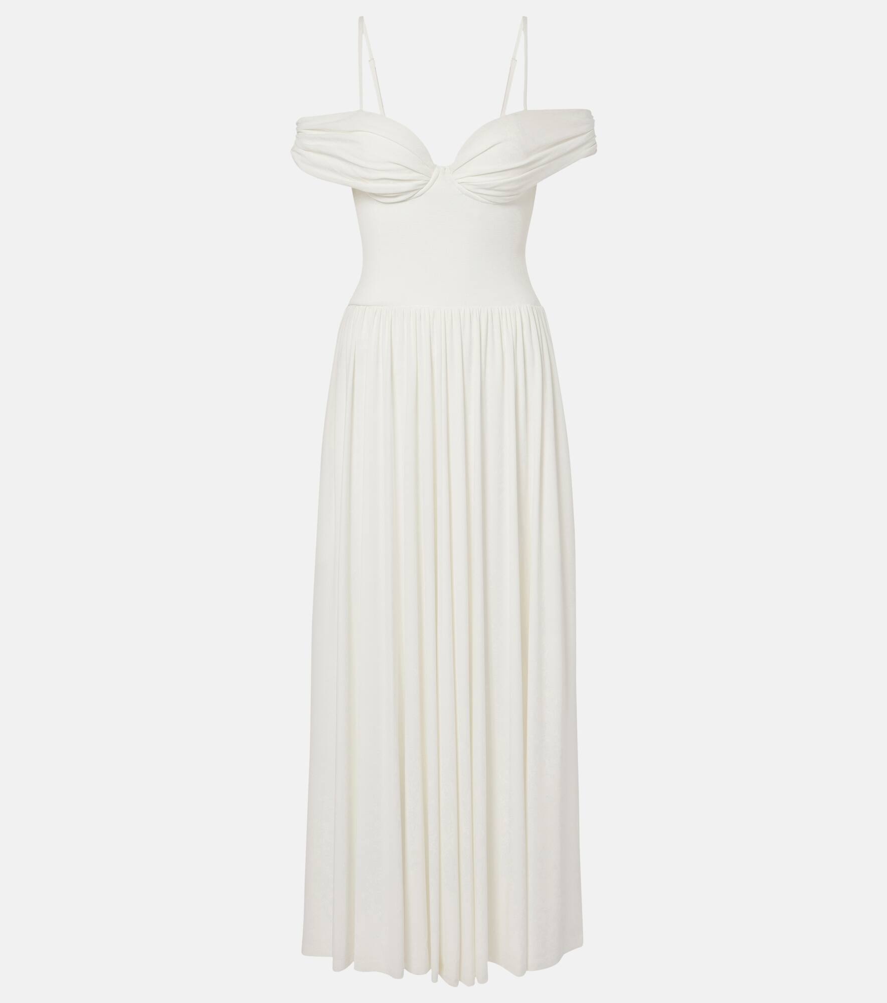 Amarantha cold-shoulder pleated stretch-jersey and knit gown