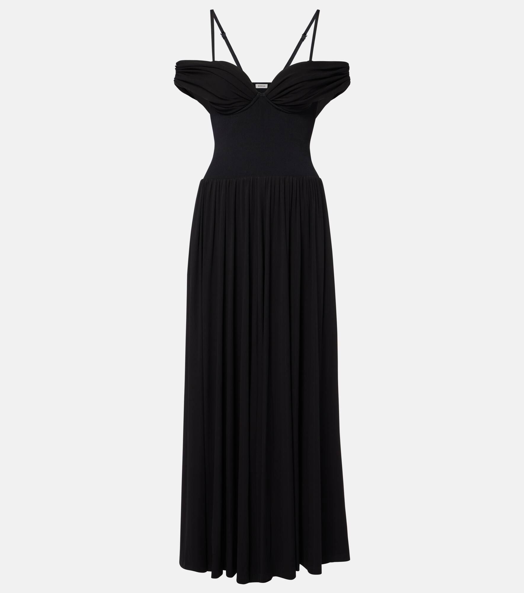 Product Details - Material: 96% rayon, 4% elastane - Care instructions: dry clean - Made in the USA - Designer color name: Black - Adjustable shoulder straps - Material II: 83% viscose, 17% polyester - Lining: 94% rayon, 6% elastane - Item number: P01000043 Size & Fit - True to size - Underwired top - Fitted bodice, loose skirt - Stretchy fabric - Padded top - The model seen in the picture is 178cm-5'10" and wearing a size XS