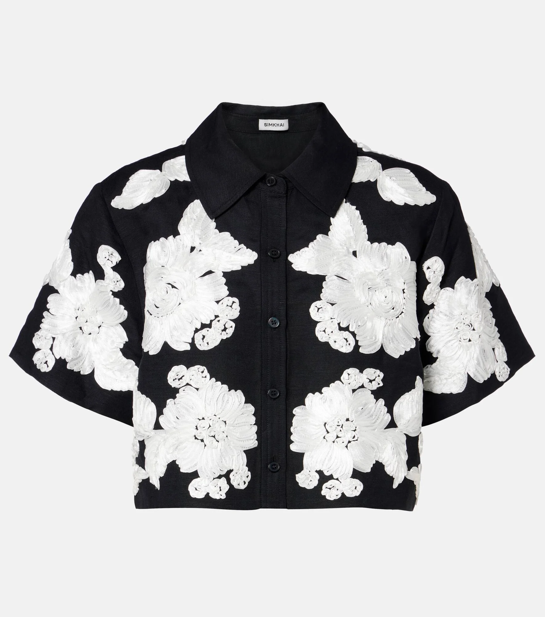 Inspired by sculpture and architecture, Simkhai's designs combine innovative construction with hand-detailing. The Callie shirt is crafted from a linen blend and adorned with exquisite floral embroidery all over. Product Details - Material: 55% linen, 45% viscose - Care instructions: hand wash cold - Made in China - Color: black - Designer color name: Black Multi - Item color: black, white - Collar: classic (Straight point) - Closure: buttoned front - Item number: P01125140 Size & Fit - True to size - Designed for a loose fit - Non-stretchy fabric - Cropped - The model seen in the picture is 178cm-5'10" and wearing a size XS