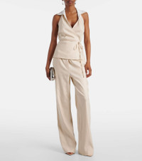 Taking inspiration from sculpture and architecture, Simkhai's impactful designs combine innovative construction with hand-detailing. The Campbell top is made purely from linen and features an open collar and self-tie at the natural waistline. Product Details - Material: 51% linen, 46% rayon, 3% elastane - Care instructions: machine wash cold - Made in China - Designer color name: Sand Multi - Item color: beige - Material II: 63% cotton, 37% polyester - Lining: 100% cotton - Closure: tie waist - Collar: classic (Straight point) - Item number: P01065930 Size & Fit - True to size - Low back - Cinched waist - Non-stretchy fabric - Falls to the hip - The model seen in the picture is 178cm-5'10" and wearing a size XS