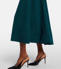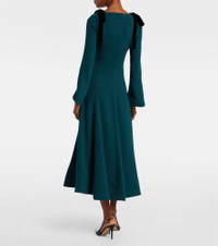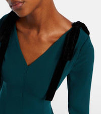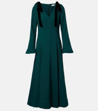 Inspired by sculpture and architecture, Simkhai's designs combine innovative construction with hand-detailing. The Claribel midi dress features a flared silhouette with a V-neck and is finished with black velvet trim on the shoulders. Product Details - Material: 100% polyester - Care instructions: machine wash at 30 degrees - Made in Turkey - Designer color name: Green - Item color: green, black - Lining: 100% polyester - Collar: V-neck - Closure: concealed zipped back - Item number: P01115008 Size & Fit - True to size - Cinched waist - Non-stretchy fabric - The model seen in the picture is 178cm-5'10" and wearing a size US 4