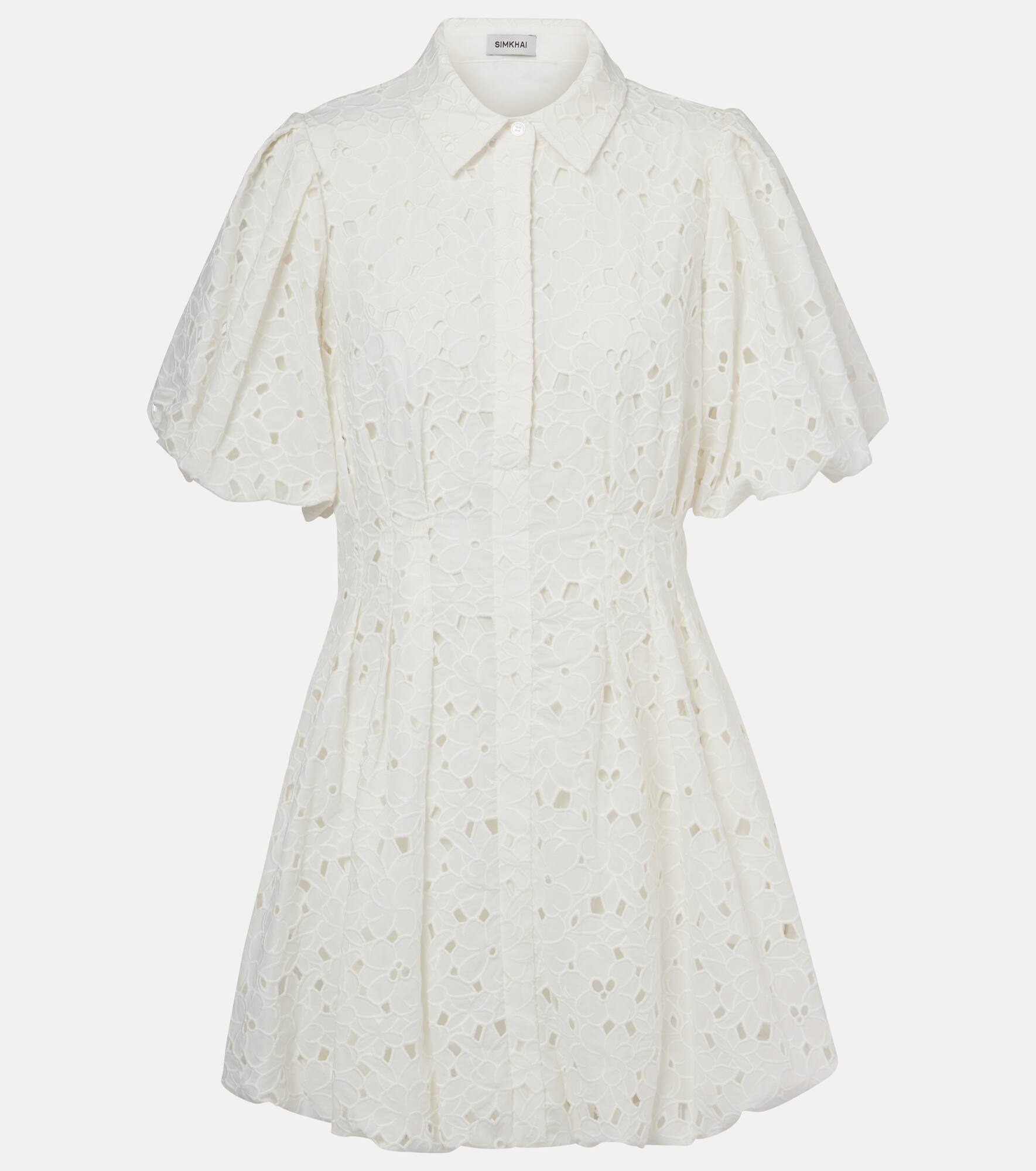 Elegant warm-weather ensembles call for pieces like the Cleo minidress from Simkhai. Made from pure cotton with broderie anglaise detailing, this softly-structured design is complete with voluminous sleeves and a pointed collar. Product Details - Material: 100% cotton - Care instructions: hand wash - Made in China - Designer color name: White - Item color: white - Material II: 100% cotton - Lining: 100% cotton - Lining II: 100% polyamide - Closure: partially buttoned front - Collar: classic (Straight point) - Fully lined - Item number: P01066005 Size & Fit - True to size - Cinched waist - Non-stretchy fabric - The model seen in the picture is 178cm-5'10" and wearing a size US 4