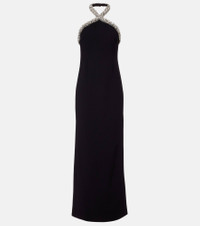 Embellished halterneck crêpe gown