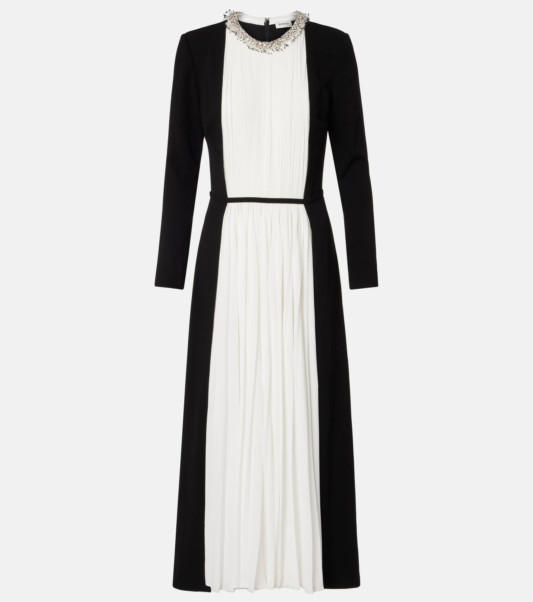 The Esther midi dress by Simkhai is crafted from fluid crepe and airy plisse, creating sculptural lines that flatter the silhouette. A subtly embellished collar adds a refined finishing touch to this sophisticated piece. Product Details - Material: 71% acetate, 29% polyester - Care instructions: dry clean - Made in China - Designer color name: Ivory Multi - Item color: black, white - Material II: 100% polyester - Lining: 100% polyester - Closure: invisible zipper - Item number: P01068637 Size & Fit - True to size - Cinched waist - Non-stretchy fabric - The model seen in the picture is 178cm-5'10" and wearing a size US 4