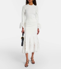 Inspired by sculpture and architecture, Simkhai's designs combine innovative construction with hand-detailing. Crafted from ribbed-knit jersey, the Ferrera long-sleeved top boasts voluminous broderie anglaise details at the cuffs. Product Details - Material: 55% viscose (recycled), 31% nylon, 11% polyester, 3% elastane - Care instructions: hand wash cold - Made in China - Color: white - Designer color name: White - Item color: white - Material II: 62% cotton, 38% polyamide - Collar: crewneck - Hem: elasticated - Item number: P01125107 Size & Fit - True to size - Fitted - Stretchy fabric - Falls to the hip - The model seen in the picture is 178cm-5'10" and wearing a size XS