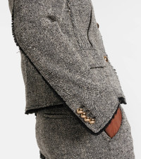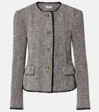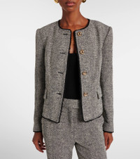 Taking inspiration from sculpture and architecture, Simkhai's impactful designs combine innovative construction with hand-detailing. The Ivie jacket is crafted from a sturdy herringbone fabric and finished with fringed trims. Product Details - Material: 56% polyester, 22% cotton, 21% viscose, 1% elastane - Care instructions: machine wash at 30 degrees - Made in China - Designer color name: Black White - Item color: black, white - Lining: 100% polyester - Lining II: 100% polyester - Hardware color: gold - Shoulder pads - Closure: buttoned front - Pockets: flap pockets - Cuff: four buttons - Frayed edges - Fully lined - Item number: P01097670 Size & Fit - True to size - Shoulder pad inserts - Cinched waist - Non-stretchy fabric - Falls to the hip - The model seen in the picture is 178cm-5'10" and wearing a size US 4