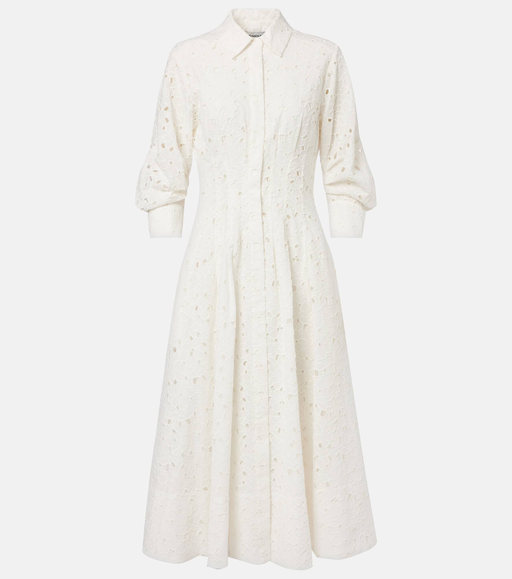 Jazz Pleated Broderie Anglaise Cotton Midi Shirt Dress
