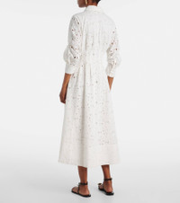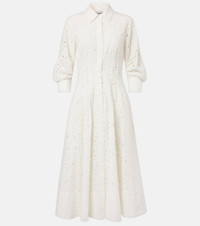 Jazz pleated broderie anglaise cotton midi shirt dress White