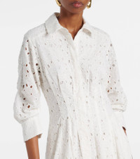 Taking inspiration from sculpture and architecture, Simkhai's impactful designs combine innovative construction with hand-detailing. The Jazz cotton broderie anglaise dress has a shirt collar, cuffed elbow-length sleeves, and a midi hem. Product Details - Material: 100% cotton - Care instructions: hand wash - Made in China - Designer color name: White - Item color: white - Lining: 100% cotton - Closure: concealed button placket - Cuff: two buttons - Collar: classic (Straight point) - Fully lined - Item number: P01066023 Size & Fit - True to size - Cinched waist - Non-stretchy fabric - The model seen in the picture is 178cm-5'10" and wearing a size XS