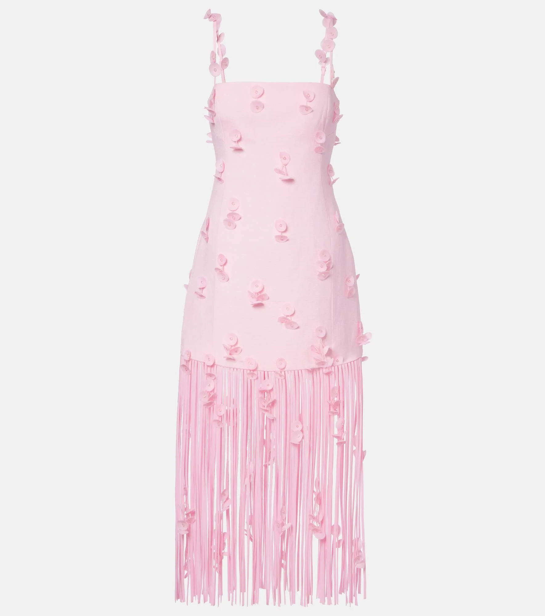 Juliana Embellished Fringed Linen-blend Midi Dress