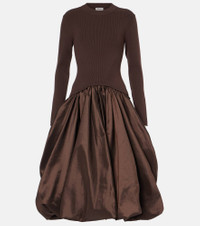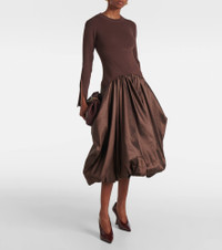 Kenlie ribbed-knit and pleated taffeta midi dress