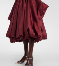 Inspired by sculpture and architecture, Simkhai's designs combine innovative construction with handcrafted details, as seen in the Kenlie midi dress. This style pairs a mockneck knitted top with a voluminous taffeta skirt, creating a stunning harmony between structure and flow, sheen and matte. Product Details - Material: 83% viscose, 17% elastane - Care instructions: hand wash - Made in China - Designer color name: Cranberry - Item color: burgundy - Material II: 60% polyester, 40% nylon - Lining: 100% nylon - Collar: crewneck - Pockets: side slit pockets - Item number: P01097654 Size & Fit - True to size - Fitted bodice, loose skirt - Partly stretchy fabric - The model seen in the picture is 178cm-5'10" and wearing a size XS