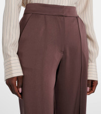 Inspired by sculpture and architecture, Simkhai's designs combine innovative construction with hand detailing. Made from lustrous satin, the Kyra high-rise pants come in a wide-leg silhouette accented by front seams. Product Details - Material: 84% acetate, 16% polyester - Care instructions: dry clean - Made in China - Designer color name: Chocolate - Item color: brown - Lining: 100% polyester - Closure: zip, hook, and button fastening - Pockets: slant pockets, back pockets - Single pleat - Item number: P01113729 Size & Fit - True to size - Non-stretchy fabric - Wide-leg - High-waisted - The model seen in the picture is 178cm-5'10" and wearing a size US 4