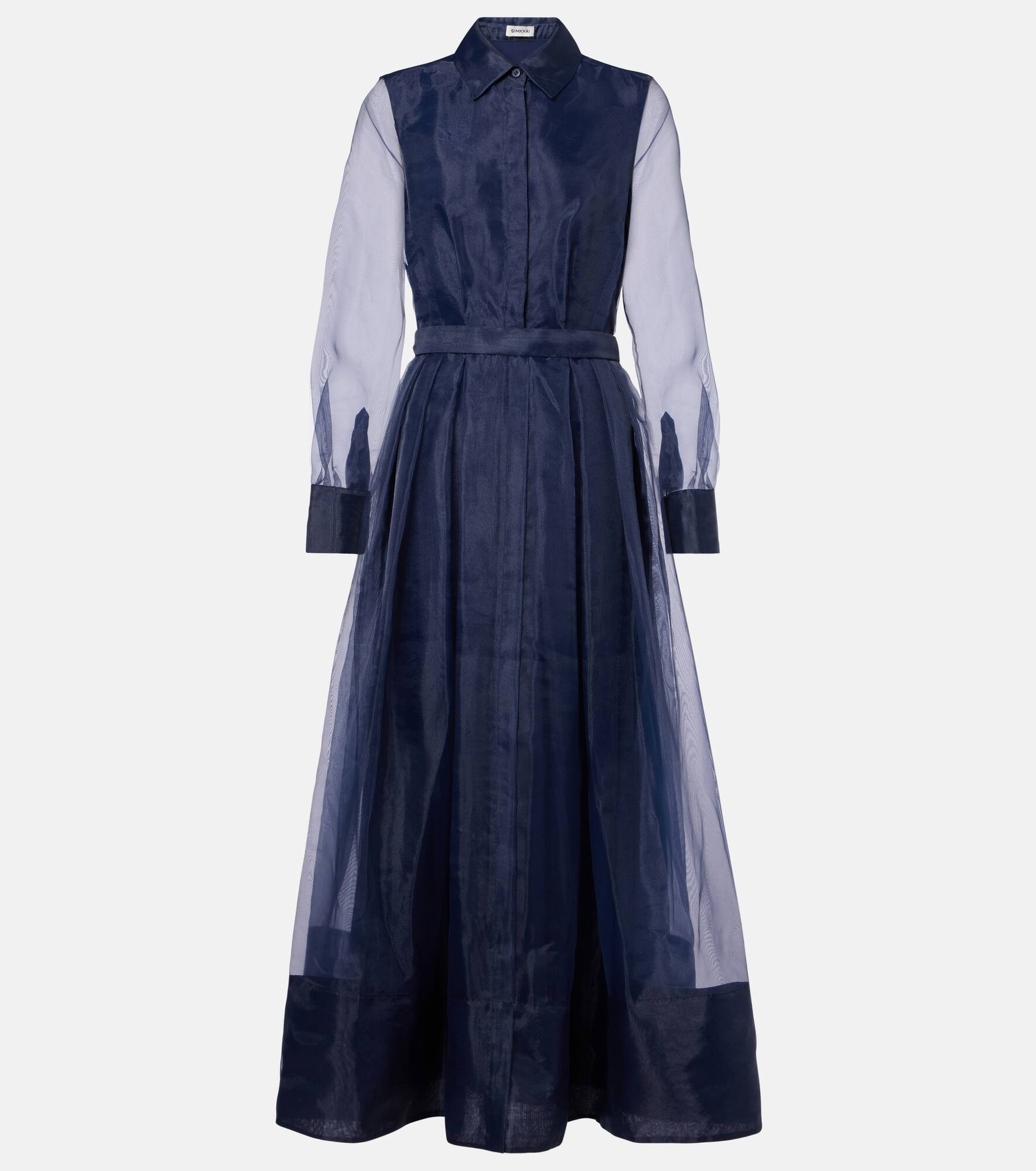 Cut to a chic shirt silhouette, the Montgomery dress from Simkhai is made from a sheer, flowy fabric. The long-sleeve design comes with a matching belt to tie at the waist. Product Details - Material: 100% polyester - Care instructions: dry clean - Made in China - Designer color name: Midnight - Item color: blue - Lining: 100% polyester - Pockets: side slit pockets - Closure: invisible zipper, partially buttoned front - Self-tie belt - Cuff: buttoned - Item number: P01068901 Size & Fit - True to size - Cinched waist - Non-stretchy fabric - The model seen in the picture is 178cm-5'10" and wearing a size US 4