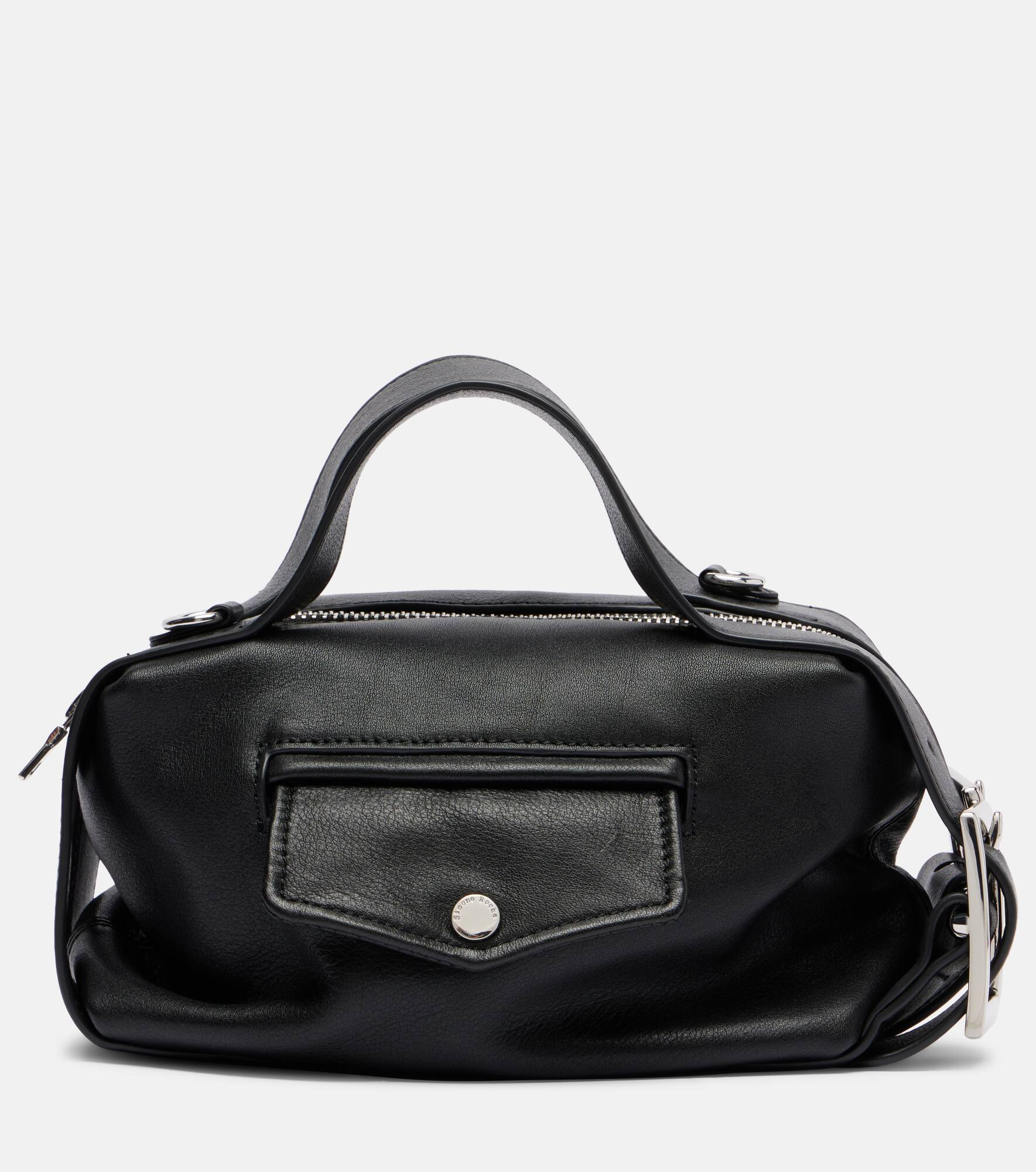 The Biker Belt Mini tote bag channels biker-inspired edge through its black leather construction and silver-toned hardware. The compact design can be carried by the top handle or worn with the shoulder strap. Product Details - Material: calf leather - Lining: cotton - Made in China - Designer color name: Black - Item color: black - Hardware color: silver - Top handles, Detachable shoulder strap - Internal details: internal slot pocket, single compartment - Closure: zipped top - Includes: dust bag - Item number: P01082305 Size & Fit - Height 13cm-5" - Width 22,5cm-9" - Depth 7cm-3" - Length of handles 18cm-7" - Length shoulder strap 102cm-40"