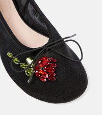 Black Mesh Embellished Ballerina Flats