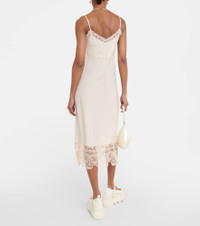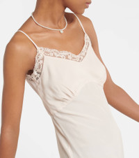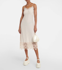 Embrace Simone Rocha’s captivating take on femininity with this slip dress design. Made from fluid crêpe de chine, it features spaghetti-style straps, an empire waistline, and delicately embroidered lace trims. Product Details - Trim: 100% polyamide - Adjustable shoulder straps - Material: 27% silk, 73% acetate - Designer color name: Nude - Care instructions: dry clean - Made in Portugal - Embroidery: 100% polyester - Item number: P00781024 Size & Fit - True to size - Semi-sheer - Designed for a loose fit - Lightweight material - The model seen in the picture is 178cm-5'10" and wearing a size UK 8