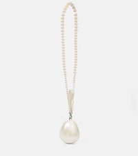 Simone Rocha challenges our perception of evening elegance with this marbled Egg clutch in pearlescent white. The oval-shaped silhouette is suspended from a tonal leather wristlet with a faux pearl-embellished strap for crossbody wear. Swing yours alongside the label's pretty pinafore dresses for a fanciful finish. - material: acrylic - trim: lamb leather - internal details: fabric lining - colour of fastening: silver - detachable shoulder strap - magnetic fastening - comes with dust bag - Designer colour name: Pearl/Pearl