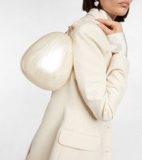 The Egg clutch from Simone Rocha is inspired by pearls from the Baroque era. It is crafted from Perspex® with a pearl-effect finish and suspends from a leather strap. Product Details - Made in China - Material: plastic - Closure: magnetic-tab fastening - Detachable shoulder strap - Internal details: fabric lining - Comes with a box - Color of fastening: pale gold - Item number: P00725804 Size & Fit - Height 22cm-8.5" - Max. width 18cm-7" - Max. depth 16cm-6.5" - Chain length 124cm-49" - Suitable for large smartphones (e.g. iPhone 12 Pro Max / Samsung Galaxy A72, S21 Ultra/ Huawei P40 Pro, Mate 40 pro)