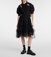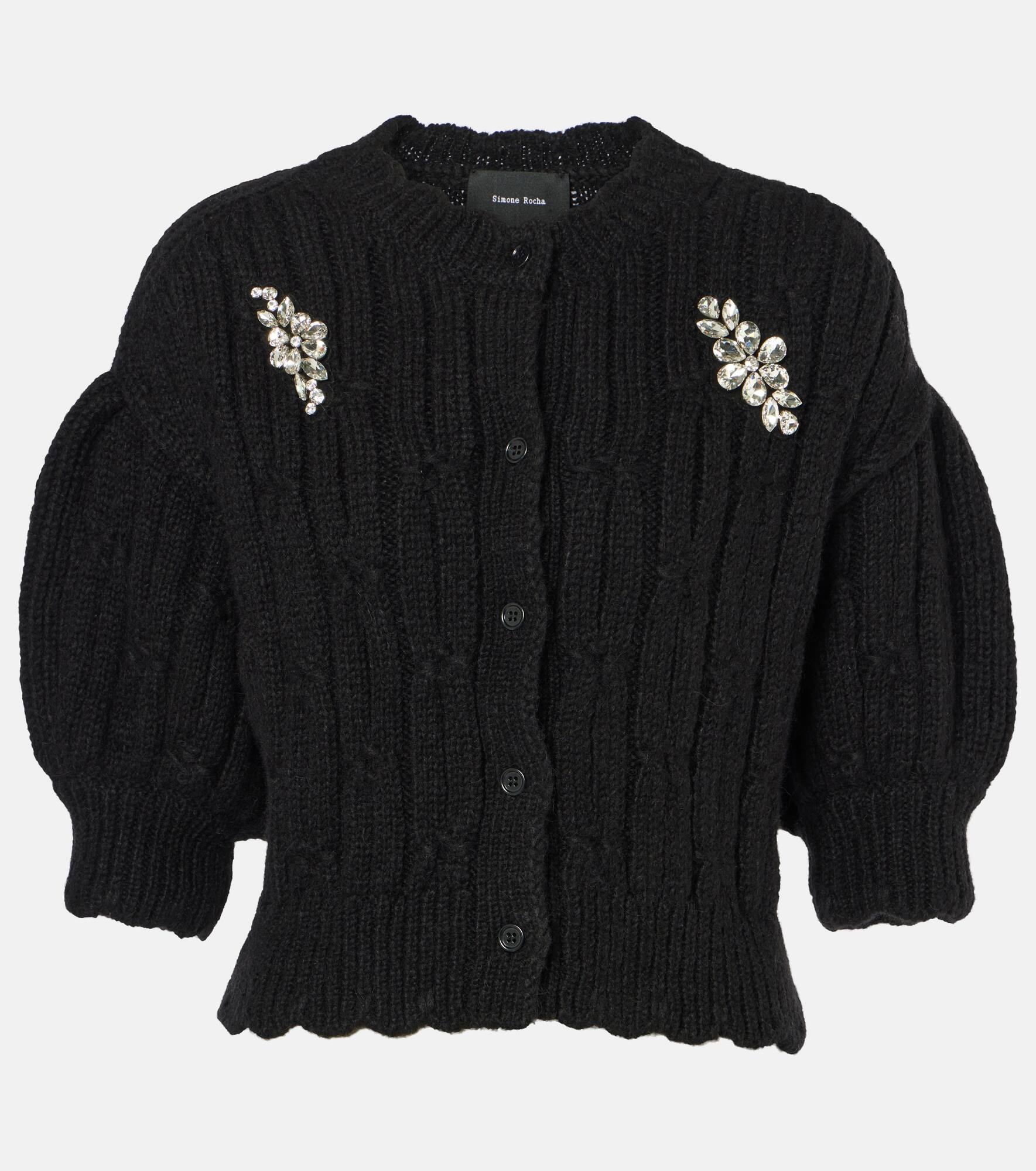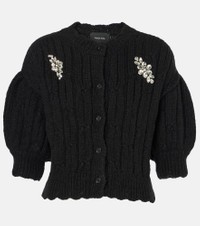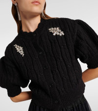 Cropped crystal-embellished scalloped cable-knit alpaca-blend cardigan