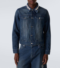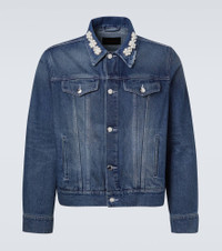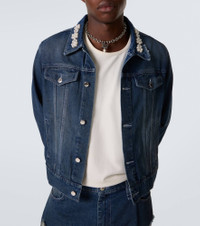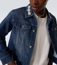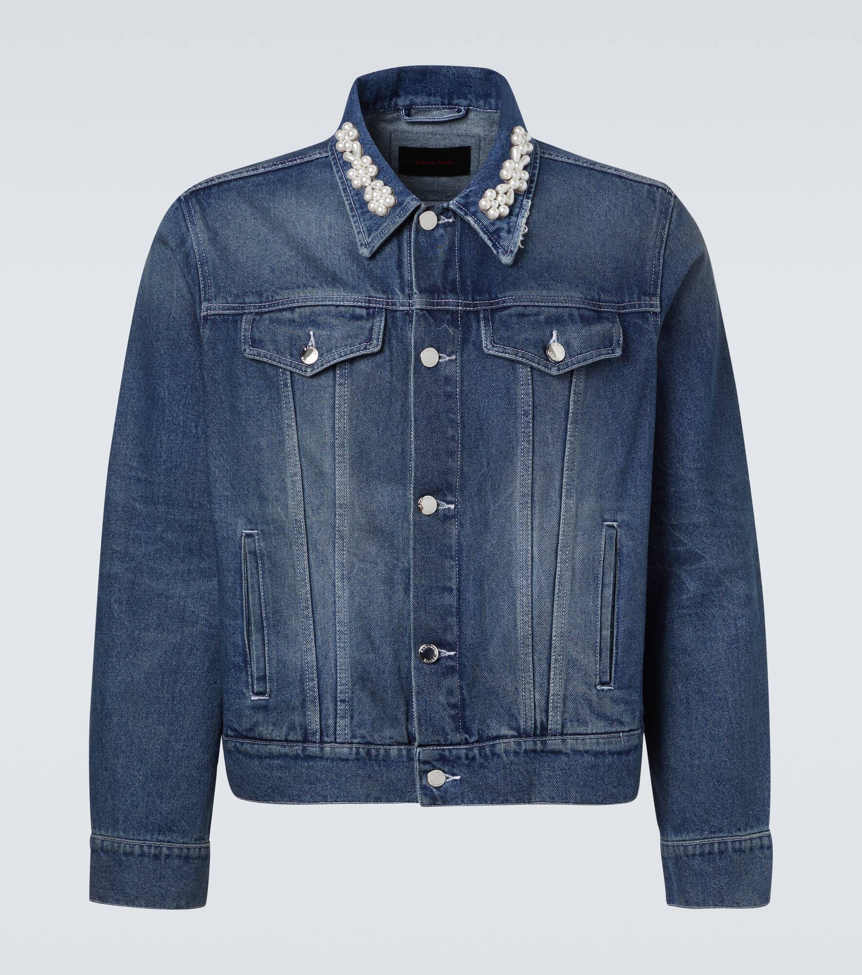 Add this jacket from Simone Rocha to your everyday denim rotation. Made from pure cotton, the design features a cropped silhouette with a washed finish and boasts delicate embellishments on the collar and the back leather patch. Product Details - Material: 100% cotton - Care instructions: hand wash - Made in Portugal - Designer color name: Distressed Blue/Pearl - Item color: blue - Closure: buttoned front - Pockets: buttoned pockets, side slit pockets - Cuff: buttoned - Item number: P01064450 Size & Fit - True to size - For a looser fit, we recommend taking one size up - Straight fit - Non-stretchy fabric - Slightly cropped - Height of model is 189cm-74.5" and wears a size L