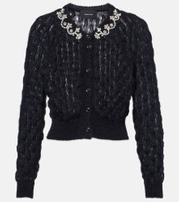 A mainstay at London Fashion Week, Simone Rocha's artful aesthetic is a subversive take on romance. This mohair-blend cardigan is knitted into a textured design and finished with ribbed trims and an embellished collar. Product Details - Material: 50% mohair, 32% polyamide, 18% wool - Care instructions: dry clean - Made in Portugal - Designer color name: Black/Pearl/Crystal - Item color: black, silver - Closure: buttoned front - Item number: P01112225 Size & Fit - True to size - Semi-sheer - Cinched waist - Slightly stretchy fabric - Slightly cropped - The model seen in the picture is 178cm-5'10" and wearing a size XS