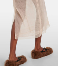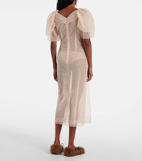 Embellished ruched mesh midi dress
