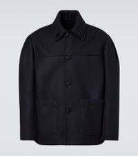 Simone Rocha’s signature glass pearl embellishments are a symbol of the brand’s romantic elegance. The jacket has a workwear-inspired silhouette and is constructed from a warm wool blend. Product Details - Material: 50% wool, 25% polyester, 13% polyamide, 12% polyurethane - Care instructions: dry clean - Made in Portugal - Designer color name: Navy/Jet - Item color: blue - Collar: classic (Straight point) - Closure: buttoned front - Pockets: patch pockets - Vent: single - Item number: P01064449 Size & Fit - True to size - Dropped shoulders - Designed for a loose fit - Non-stretchy fabric - Falls below the hip - The model in the picture is 185cm-6'1" and wearing a size L